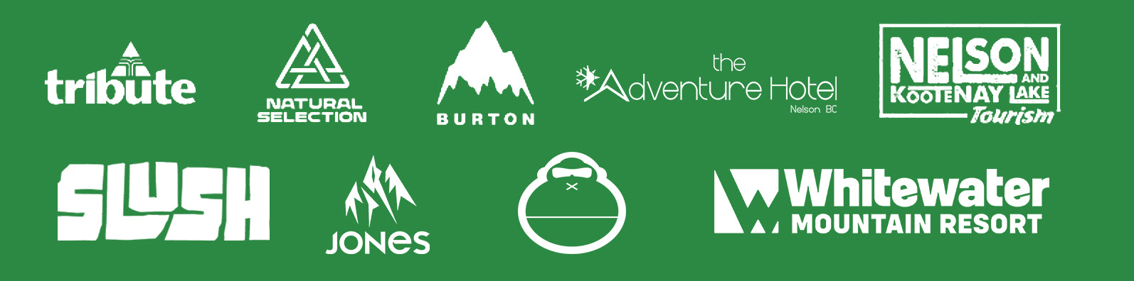 Supported by Sun Bum, Jones, Burton, Tribute, The Adventure Hotel, Nelson & Kootenay Lake Tourism, the Natural Selection Tour, and Whitewater Mountain Resort.